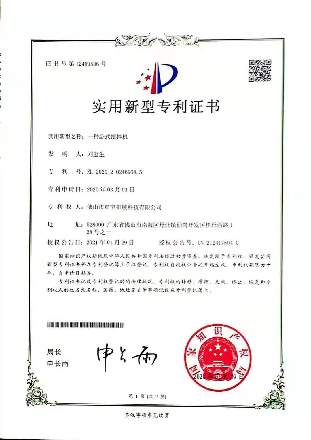 佛山紅寶機(jī)械立式塑料拌料機(jī)攪拌機(jī)專利