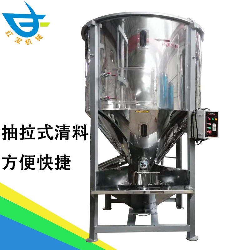 6、立式混料機(jī)不銹鋼304底部特設(shè)清料抽板,需要更換不同原料攪拌時可對攪拌機(jī)內(nèi)部進(jìn)行徹底清理、清洗,操作方便、快捷、安全。攪拌機(jī)頂部開口,便于查看攪拌機(jī)內(nèi)部情況。